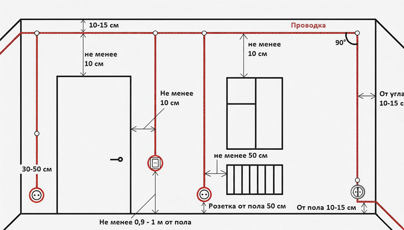 По нарисованной схеме перенесите трассы кабелей и точки крепления на стены.